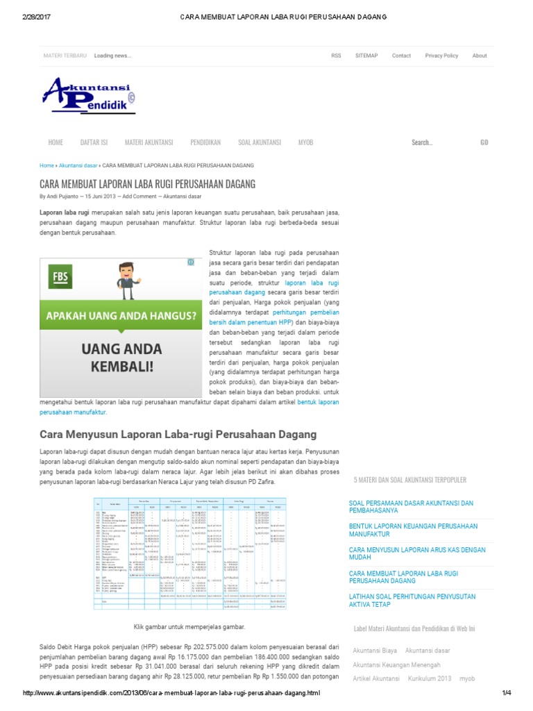 Hanya berbeda soal laporan harga pokok penjualan / produksi saja. Secara sederhana laporan laba rugi diartikan sebagai laporan keuangan yang termasuk dalam rangkaian siklus akuntansi yang dihasilkan dalam satu periode akuntansi yang didalamnya menyajikan seluruh unsur pendapatan dan beban perusahaan yang akan menghasilkan kondisi sebenarnya laba bersih atau rugi bersih perusahaan. Laporan laba rugi adalah laporan keuangan yang menggambarkan jumlah penghasilan, beban yang ditanggung, dan laba atau rugi yang dicapai sebuah perusahaan dalam suatu periode. Jika dilihat secara seksama, ada beberapa akun rekening yang tidak ada di neraca lajur perusahaan dagang dan perusahaan jasa. Contoh soal dan jawaban neraca lajur perusahaan manufaktur.